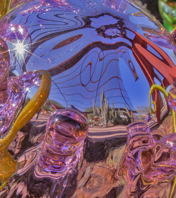 Very unusual. To me the most interesting part of the image are the cactus. In my revision I cropped out the dark lower portion of the image and then twisted some of the image so that the everything points toward the cactus. |