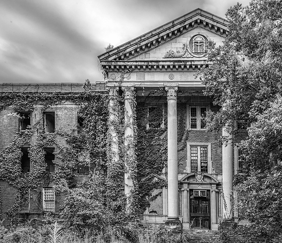 I like this image a lot - both the original color version as well as the mono. You can see immediately that the building has been abandoned. In my revision I cropped some off the right side to improve the composition by focusing more attention to the entrance. I also straightened some of the angles and increased the contrast. Somehow in my revision I converted the image to just black and white but I think the original sepia tone might have been better. |
