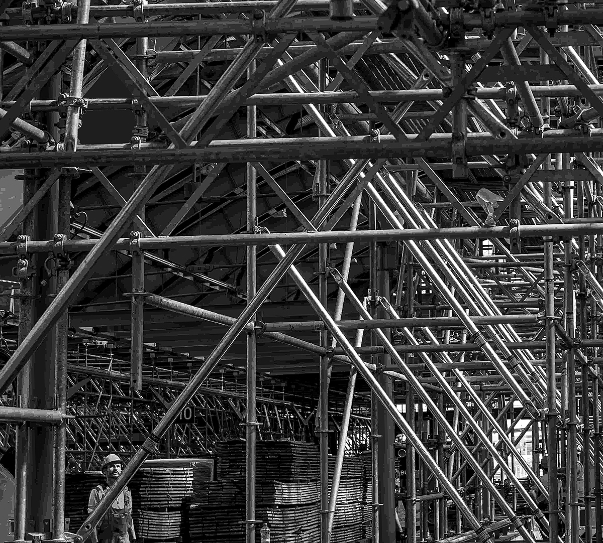 A very nice conversion to mono from the original color. To me I feel that there is no center of interest in the image. In my revision I cropped down to the bottom left corner to feature the worker looking upward. |