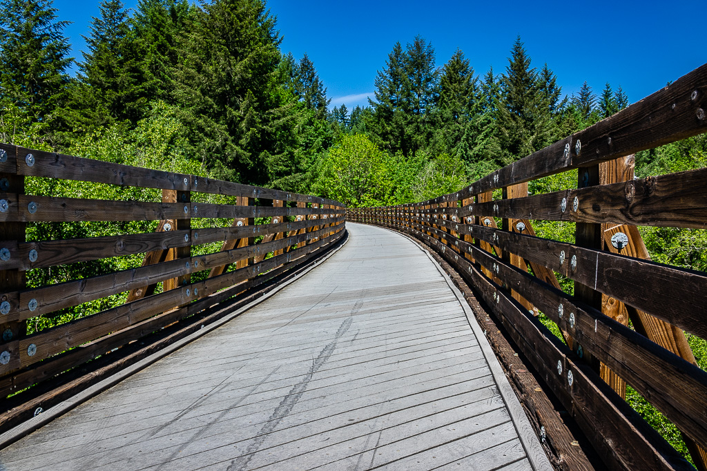 I really like this image. As others stated, it really frames Portland quite nicely. It appears that they raised the bridge for all the canoers which I find amusing. I'm a little torn on whether some clouds would help or hinder the image. It seems that clouds could make it look a little busy. I think I would composite in some clouds and see if that makes it look too busy. But I personally really like it as is. Great job!