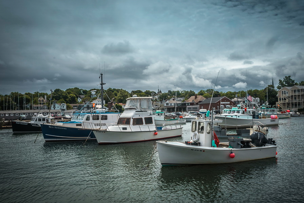 Nice composition with the four boats in foreground lined up diagonally and the moody skies. The partial boat on the right and some of the light items along the left edge distracted my eye from the four boats and sky, so I pulled in the edges, which also reduced the amount of sky and water somewhat. You also had a lot of space on the right side of the histogram, so I moved the White slider out to create more contrast. |