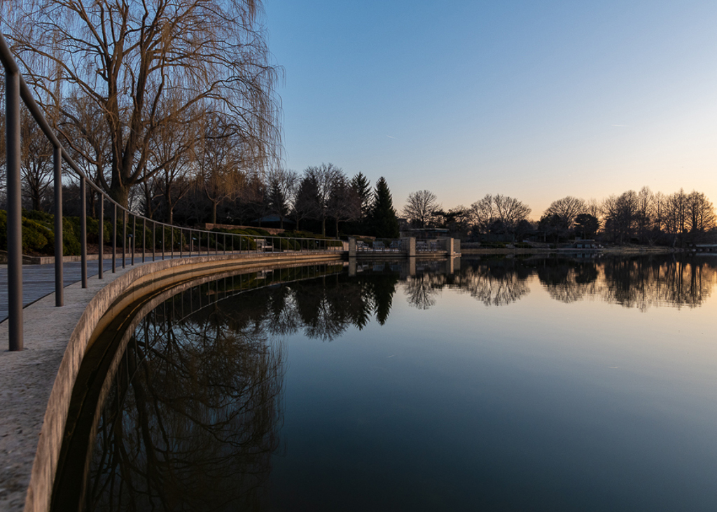 Nice mood, symmetry, and color. Distracting items on both sides to my eye, a partial bench on the left, and the right side brightness pulls my eye out of the picture. I would tone it down, or crop to just leave a hint. |