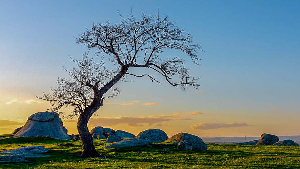 Very striking composition and mood, David. Nice capture. If processing for my taste I would bring out a bit more from the shadows in the tree and rocks, and warm up the feel of the light on the foreground objects and low clouds. If you process further for display, I would take out the tower on the horizon toward the right. |