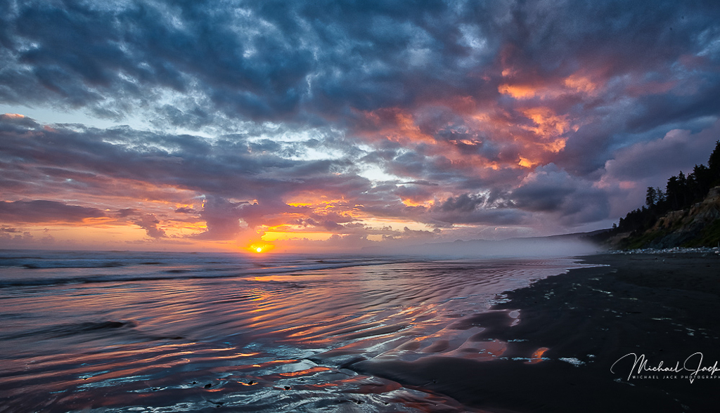 Beautiful image well presented, Michael. Technically spot on with just the right amount of softness and color. The only minor change I would make if were printing to display would be to crop in a bit from the upper right to get rid of the rightmost tree top and a couple isolated light bits on the beach. |