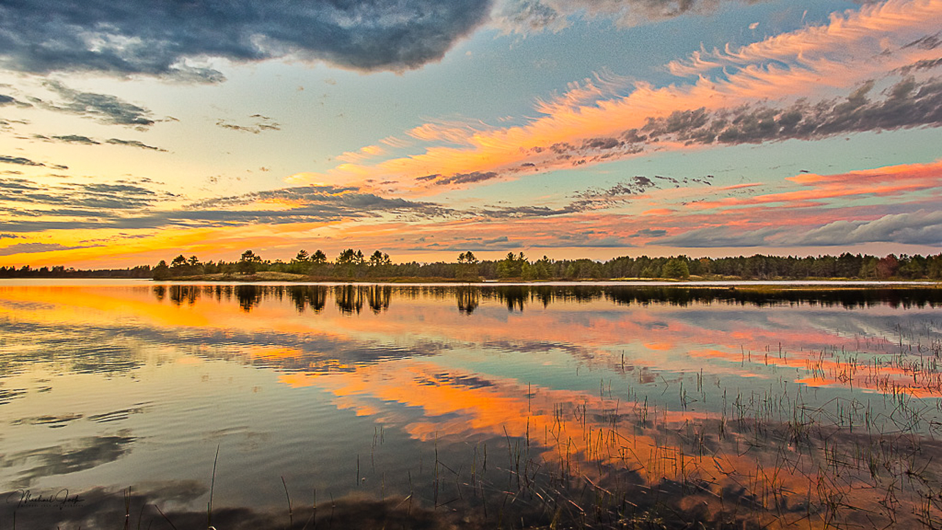 Great image, Michael! Lovely colors, composition, and capture. The one thing I would change if this were mine would be to crop to a 16x9 to give the sky and water a more symmetrical feel, as the large mass of dark clouds in the upper left weighs down the emotional feel of the rest of the image in my mind. A nit (if you print) would be to clone out the three short bits below your watermark. |