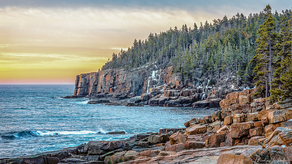 Nice composition, well seen. I personally would not crop off the top half of the tree line, as I find the upper two thirds of the image the area of greatest interest, anchored by the rocks on the bottom right. I played with making a 16x9 and cropping off from the bottom. A subjective call.