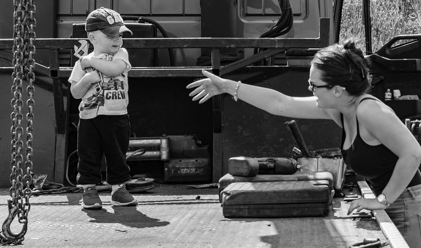 Thanks for the suggestions. Have taken the liberty of posting a slightly different image of this scene and cropped in closer. In this one there is more interaction between the boy and his mum and he looks less ready to give it up! Whether this is a better shot I'm not sure. Enjoy your baby sit Sheldon but take no spanner/wrenches with you. |