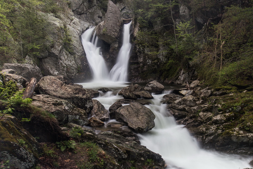 Very nice capture of the waterfalls! I like both versions, the original and the converted B&W. The latter shows nice contrast between the rocks and the streams whereas the color version shows some mossy colors that add interest to the landscape. |