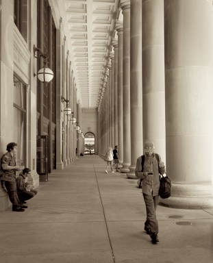 Larry, the texture and lines of this scene are just beautiful. I agree that the contrast in lighting and shade is what makes this an outstanding image. If it were mine, I would try to tone down the stark white on the left side of the two columns in the front perhaps seeing if I could capture a bit more of the marbling we see on the right side of the columns. This image is so sharp and clear I feel that I could reach out and touch the roughness of the stone. It is simple but powerful. Great job! |