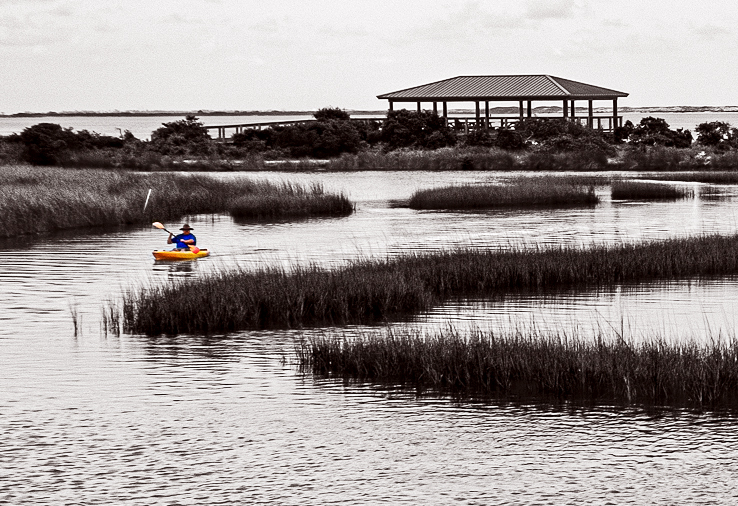 I think you are on the right track in capturing this kayaker. For using a shutter speed of 1/80 you did a great job in capturing the rider while softening the water. I would suggest that you try to achieve a more realistic skin tone as well as using a longer, narrower crop. The story is in man verses water. Allowing us to gain a better sense of where he is headed will help tell that story. |