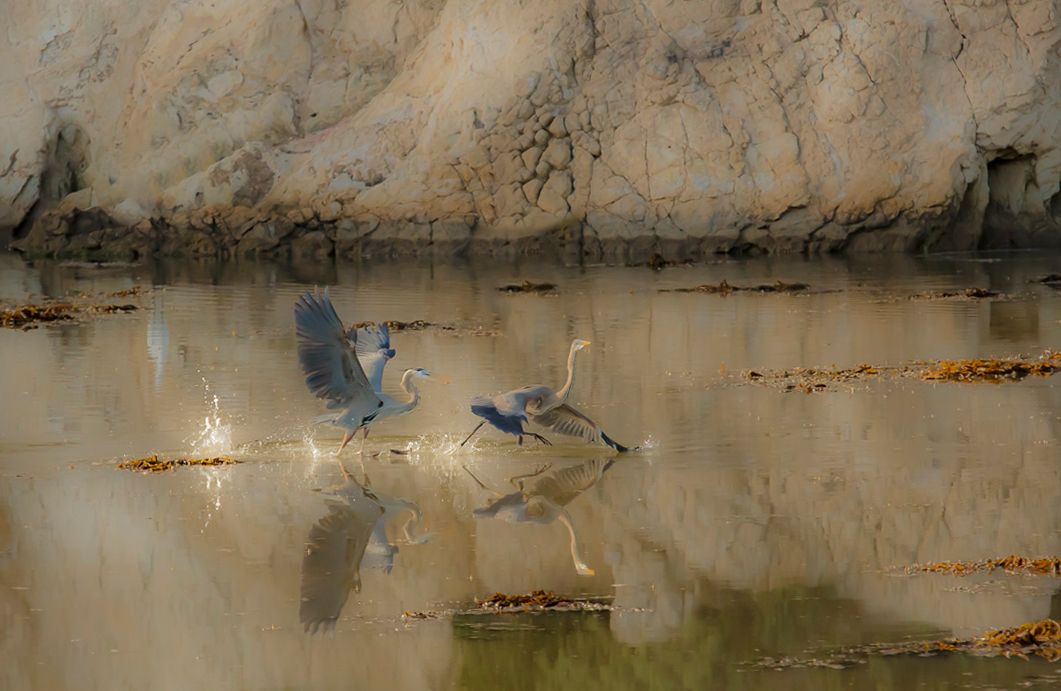 Walter, this is a magical moment that you captured! This color throughout the image adds to the magic. My only suggestions would be to crop horizontally to that more of the interactions of the "stars" of the image can be seen. I would also remove the two birds in the background. BEAUTIFUL image! |