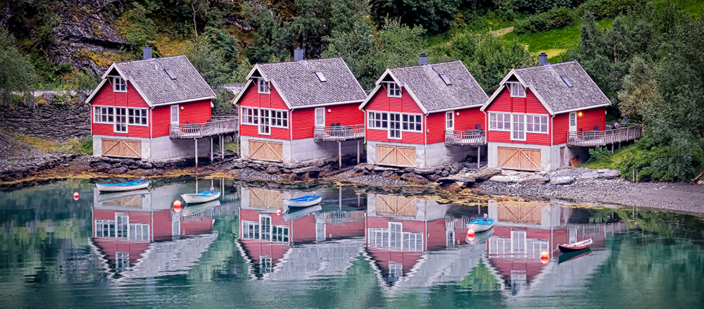 Bud, this is a GREAT image! Love the sharpness, vivid colors and most of all the reflections. My only minor suggestion beyond toning down the greens would be to crop off about half of the foliage at the top, a bit at the bottom and vignette. The star of this image are the houses and their reflection and |
