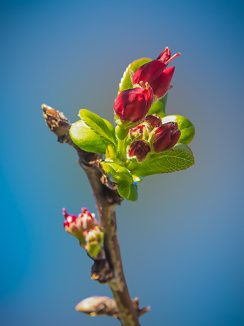 Walter, just love the vivid colors of this image. It really captures the essence of spring. Your crop is spot on and the sharp crispness of the buds add to the story. My only suggestion would be to further blur the background and add a vignette. |