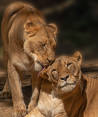 Joan, what a tender moment between these two females. I am wondering if they are actually related to one another. I think your colors are spot on but would like to suggest even a tighter crop to give us even a greater sense of the story. |