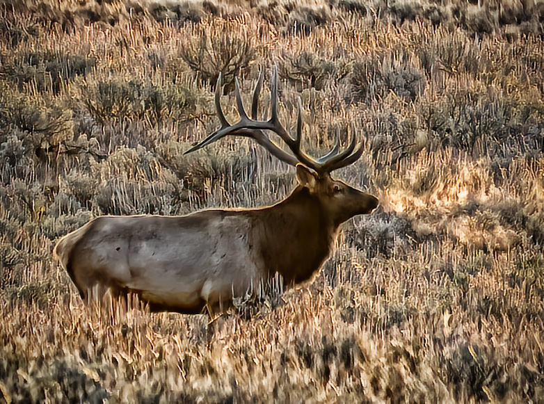 Bud, what an exciting adventure this must have been! Great image. Love the coloring and the fact that you actually captured his breath. He is clear and sharp and the coloring is beautiful. I could not resist however trying a re-crop and adding more texture in Nic Detail Extractor as well as a vignette. |
