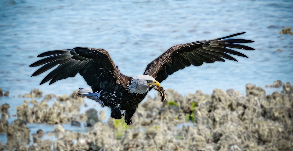 Bud, what an INCREDIBLE capture! You must have been so excited to see this taking place before your eyes. Your image is tack sharp to my eyes. The coloring is spot on however in order to differentiate the bird from the rocks, you may want to consider a few adjustments. I am by know means an expert in using Photoshop, I tried a few adjustments selecting the bird and then selecting the inverse to blur the background and differentiate the levels of color between the bird and the background. Finally, I cropped and added a vignette. Bud, your image has such incredible potential, I hope you will continue tweek it under you capture that moment again. |