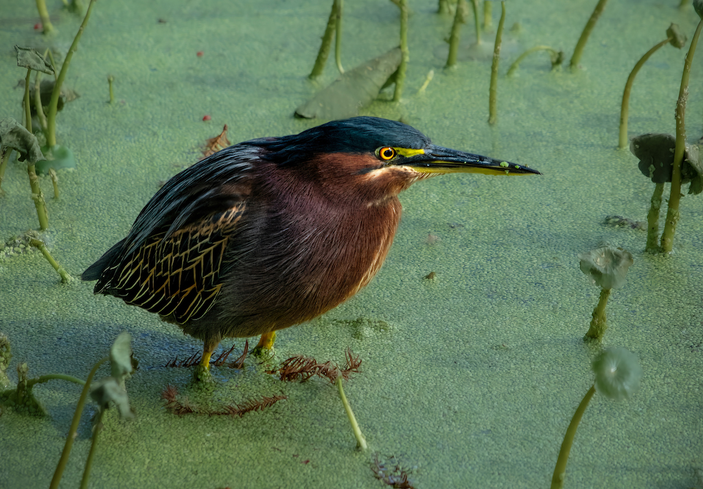 Joan, the bird is sharp, lots of texture in the feathers. The eye is not only an interesting color but the catchlight adds to our seeing into the bird's soul. My only suggest would be to tone down the railing or to soften it a bit so that it does not compete with the bird. |