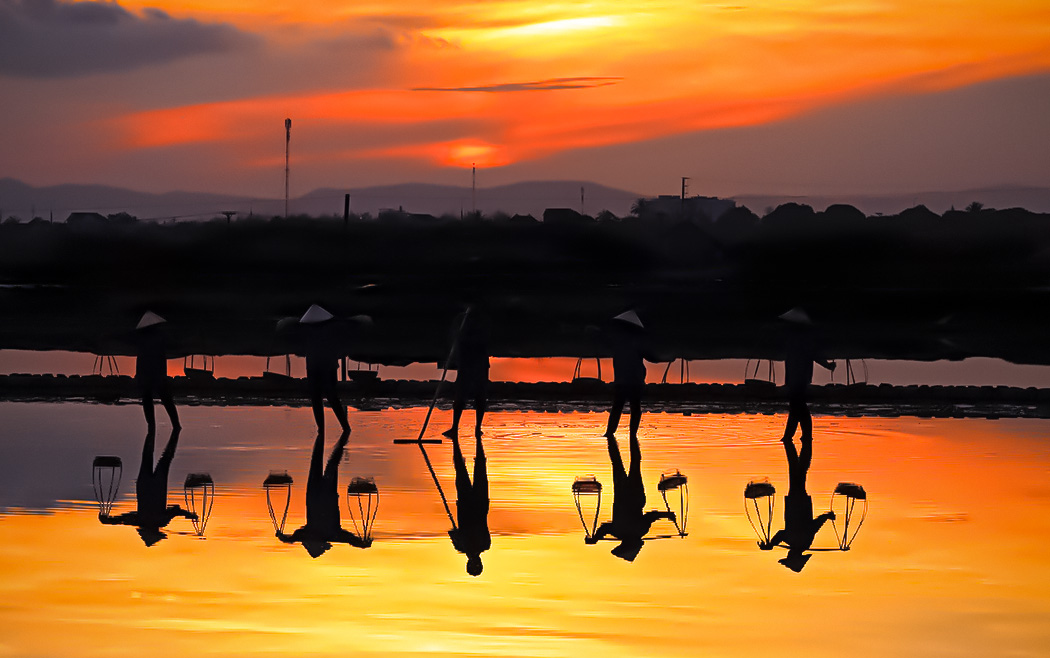 I think taking this image from the road allowed you to capture a perfect moment! The workers appear as wonderful dancers and the silhouettes is incredibly sharp. The symmetry adds to the overall composition. I feel that your processing may be a bit too saturated. I also think that lightening the hats on the workers and darkening the background a bit would really make a difference. The black and white is also a very strong image. I like both equally. Great job! |