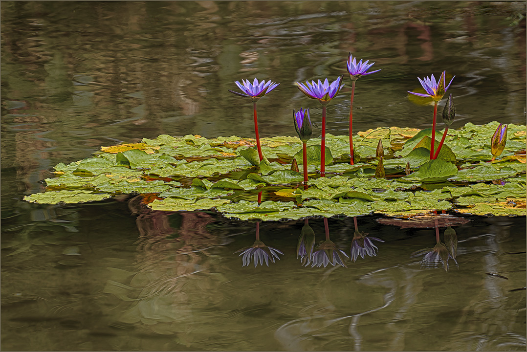 Joan, just lovely! You have captured the grace and beauty of the lilies. I think what you lost in processing was the contrast between the lily pads and the water which appears in the original. I am wondering if making more of a distinction between the two would eliminate some of the busyness in the processed image. Also, I think a bit of clean up of distracting twigs etc. would help. The HDR really allows the lilies and pads to pop. |