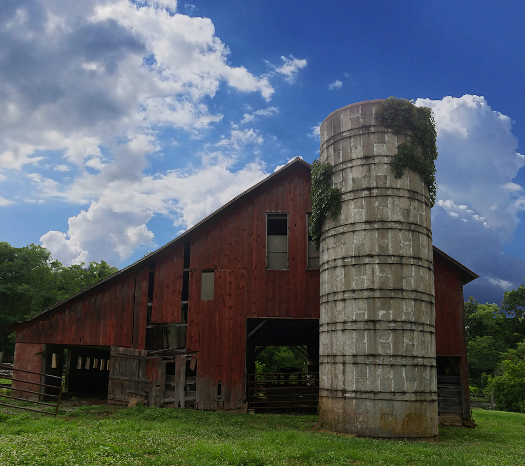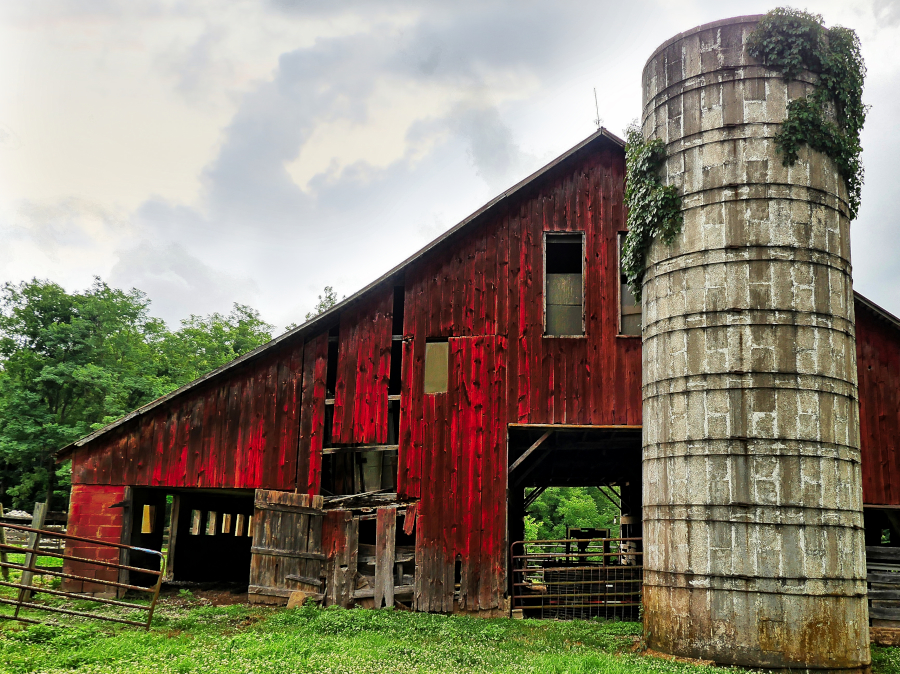 Barn was leaning and yes, it was being used. The farmer was housing his daughter's goat while she was on a mission trip. He had multiple barns but this one had the most character. I tried straighten the silo as I thought that was the more obvious. I'm not quite sure which line to use. Suggestions? |