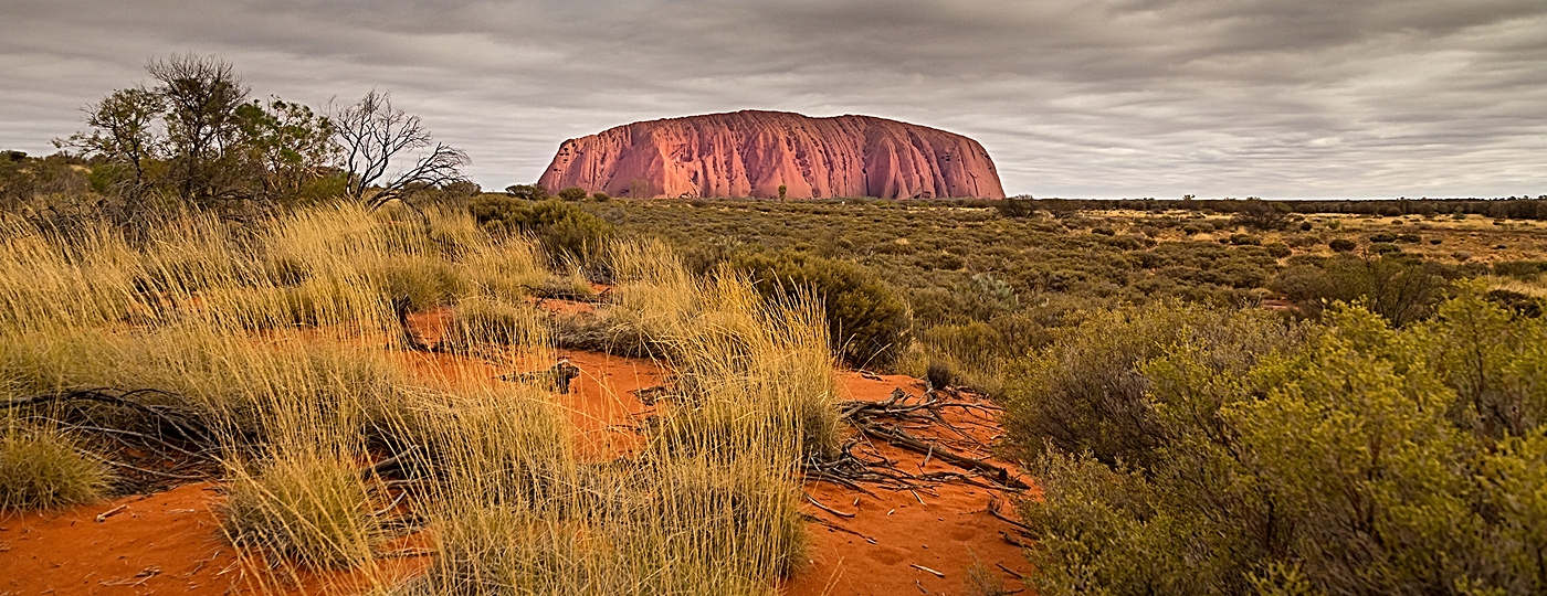My first impression was about what was the subject. Is it the the right foreground path with striking color or the Ayres Rock was the focus of this image? I'm kinda stuck in the lower right corner. I might flip it so the path is in the lower left and then my eye goes to the rock. (Learned that flipping action from Jon.) think that might lead my eye to the clouds on the upper right.