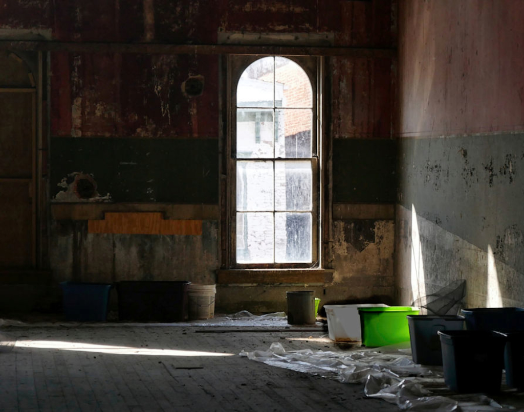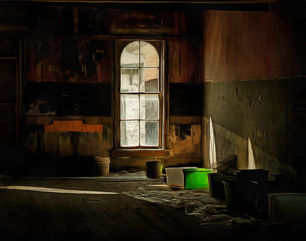 Oh, my, I can't believe the Queen of Cropping missed this. You are absolutely correct. I think I was so focused on getting the window into the upper right third that I forgot to look at the rest of the photo. I've cropped again but check it out. Also, I've darkened the white bucket.