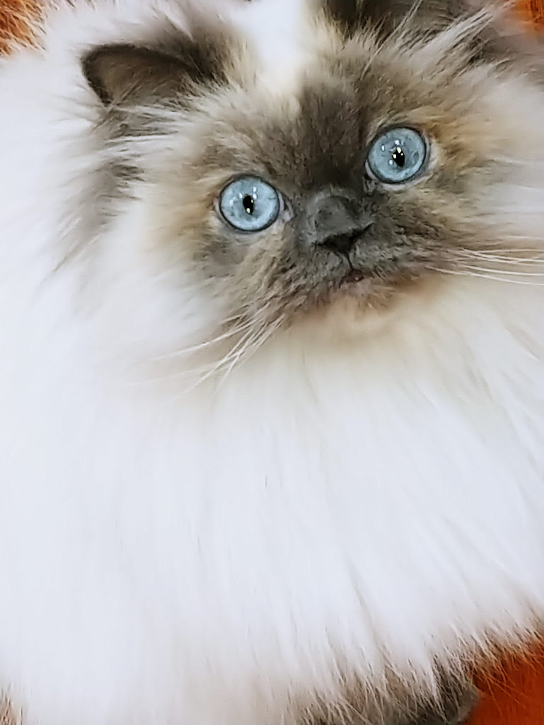 I didn't blur her at all. That is her hair close to her head, Long hair Himalayan. This is the photo I used for layering. Looks like I did some clarity or something on the composite which popped her eyes. Who knows what I did. Multiply layer result? |