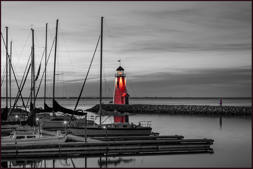 Great suggestion. I used a black and white layer in Photoshop on the original image as background, and a mask with a brush to reveal the red lighthouse and figure. Our club also likes this strategy but there is some opposition from purists. Piers |