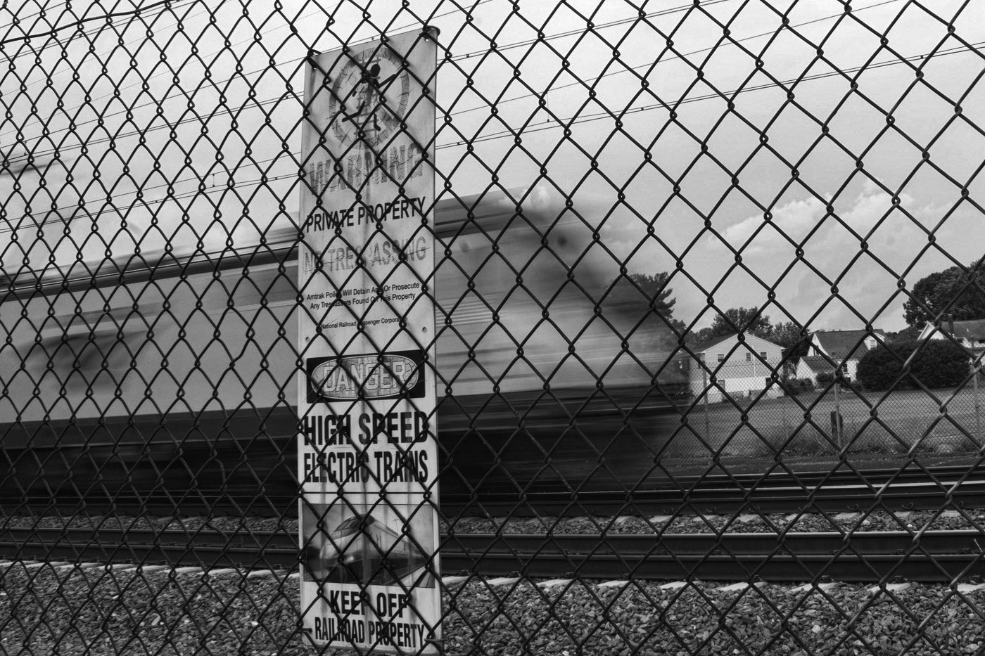 Very interesting challenge and handling of the shot. I found impact was delayed for me because of the dominating fence and sign. How about increasing contrast, slight dehaze and going black and white to bring out the train a bit? |