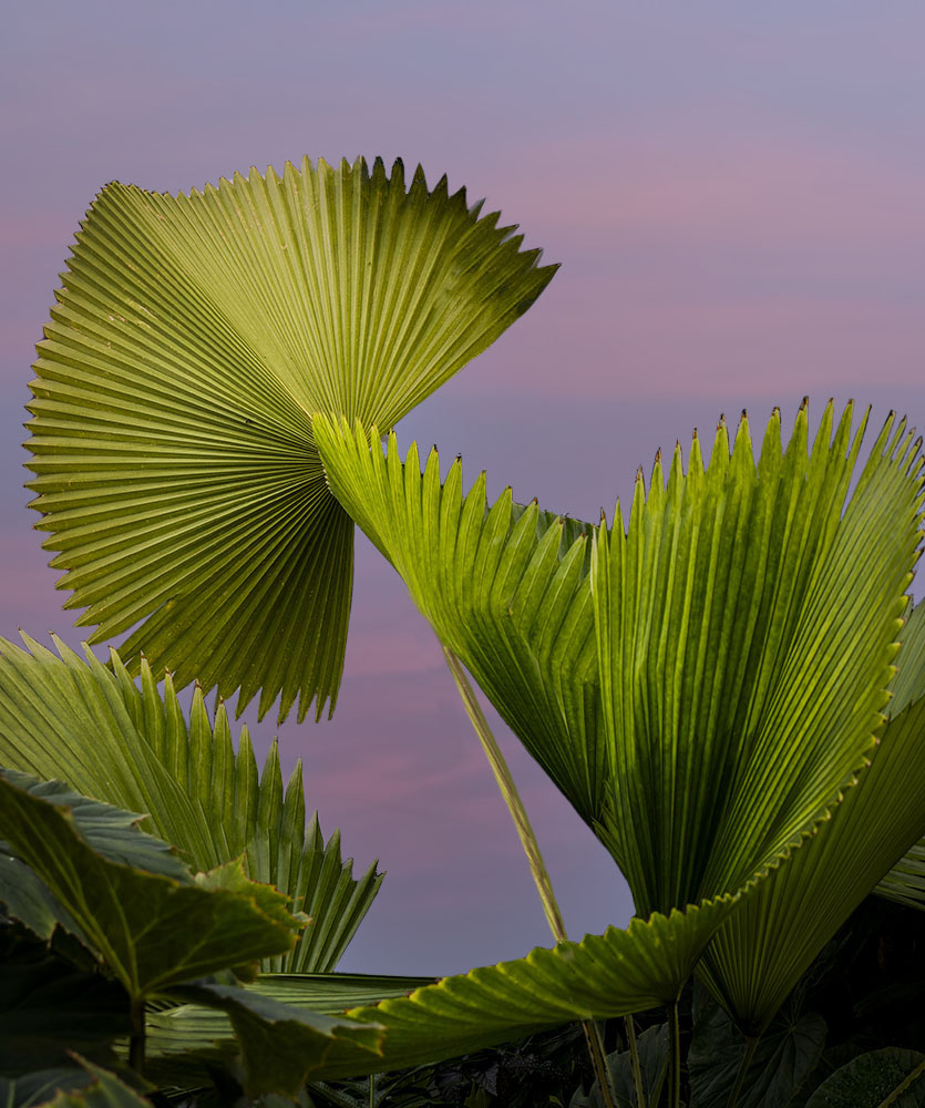 I have a 100mm macro but can't quite conceptualize your concept. Macro would capture a small part of a palm leaf and could be interesting, but going close with a wide angle might work for a partial image of the palm leaf showing more lines? |