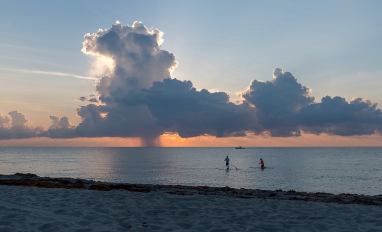 Very good image. I was wondering if the cold blue cast can be removed from the foreground and warm up a little bit. The zip zag pattern of sand and sea is very appealing to eyes. The break of vast see through surfers and the boat is prominent. The cloud is equally awesome. IMO bringing the highlights down will dramatize the sky more.