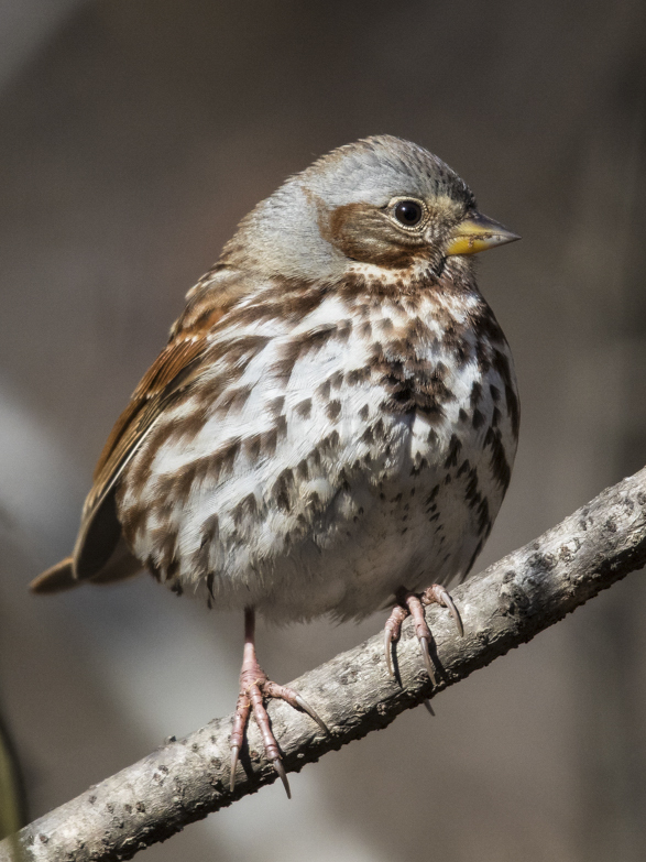 Vic, Nice image of the fox sparrow. I cropped the image to eliminate the two branches on the right because they led my eye out of the frame and a little off the left side as well. For my eye, it makes the image stronger. bruce |