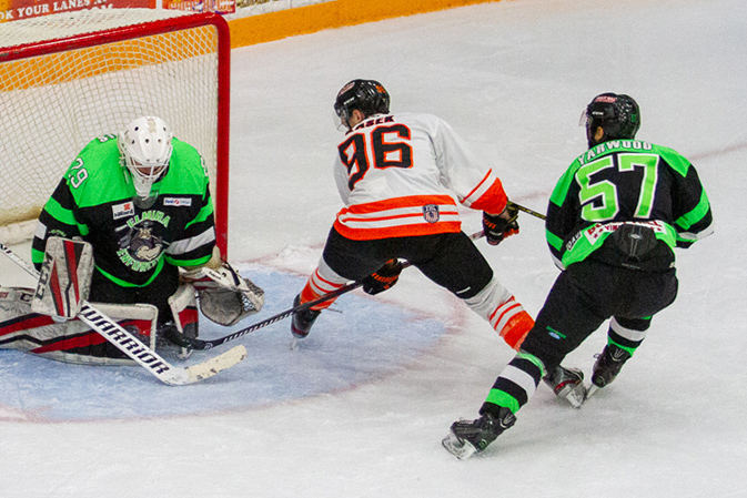 Phil, You caught the peak action here and everything is technically good. Hockey is a difficult sport to shoot because the puck is often had to see. Brenda's comment mentioned that she had to guess to see where the puck landed. As with rodeo it is also difficult to not have a distracting background. I tried a crop that cut out most of the advertising on the wall but not sure that it works any better though. |