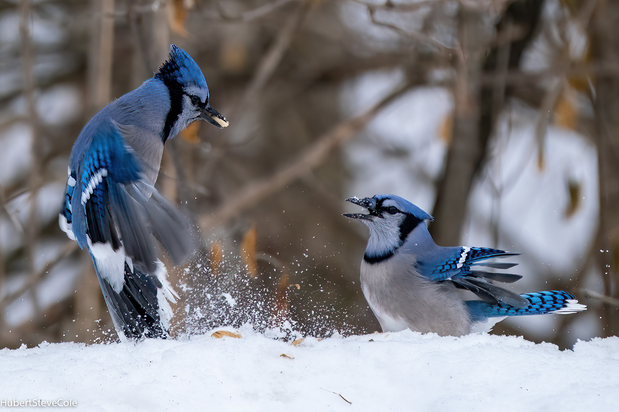 Hey Jerry, I do get Blue Jays Occasionally, but have five to seven stellar's jays that love peanuts and come every day. They are a blast to photograph and you don't get to do it every day from your own deck and back yard. I find peanuts several blocks away sometimes when I walk the neighborhood. Good job on exposing with the white snow. I find the bird on the left to be a bit soft so ran it through Topaz Labs AI sharpen which does a great job of making things sharp. Happy new year, I hope it is a great one for you. Bruce |
