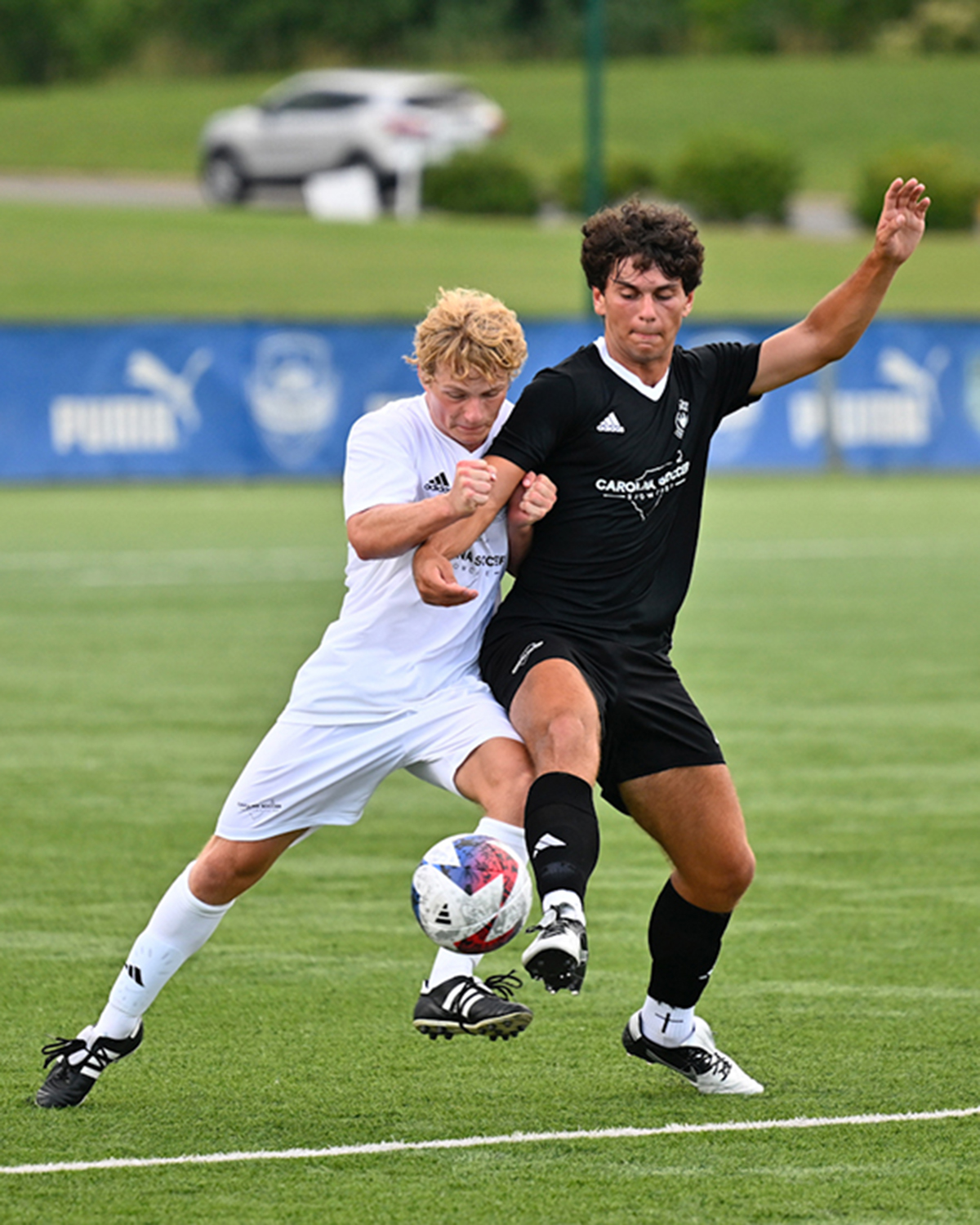 Don, Nice action image with no other players to distract. I cropped it a bit to tighten focus on the players. Two bad about the car, but not possible to get this shot without it. Bruce |