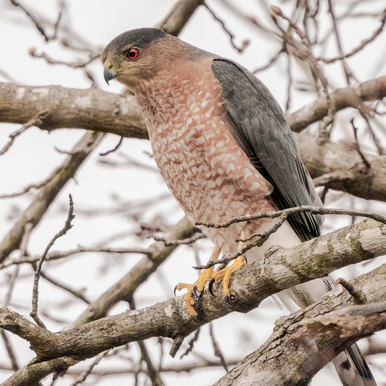 Barbara, The Coopers Hawk is quite common here in Washington state, and they come to my yard about every six weeks to hunt birds at my feeders. I have only seen them be successful once. I made your crop a square to place more emphasis on the hawk, added a little contrast and dodged the highlights in the eye for you to look at. Thanks for sharing this one, Bruce |