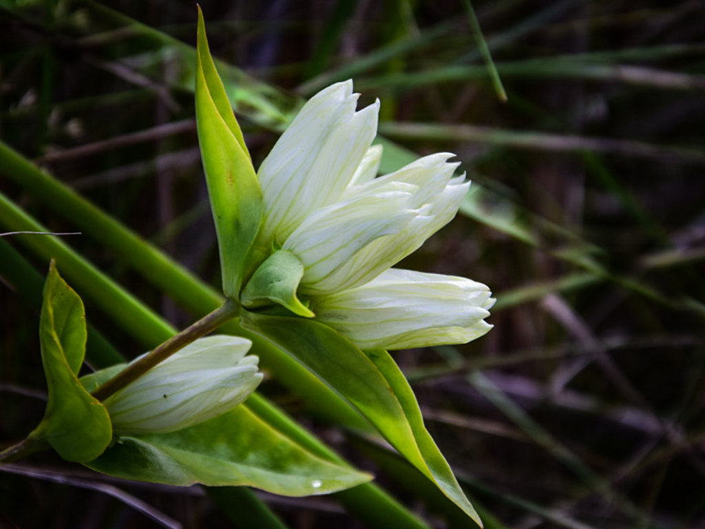Hi Charlie, I attempted to do a quick adjustment in Lightroom, cropping the photo and drastically increasing the vignette until it literally spotlights the central flower. I also tried to reduce the impact of the upper left to lower right diagonal leaf in the center of the image. I agree with the others that the diagonal lines draw the eye away from the flower. A straight-on angle may have worked better with only the center part of the flower in view rather than the side of the flower. However, I also agree with others that the out of focus green background contrasts nicely with the white of the flower. I can see why you were drawn to this flower. |