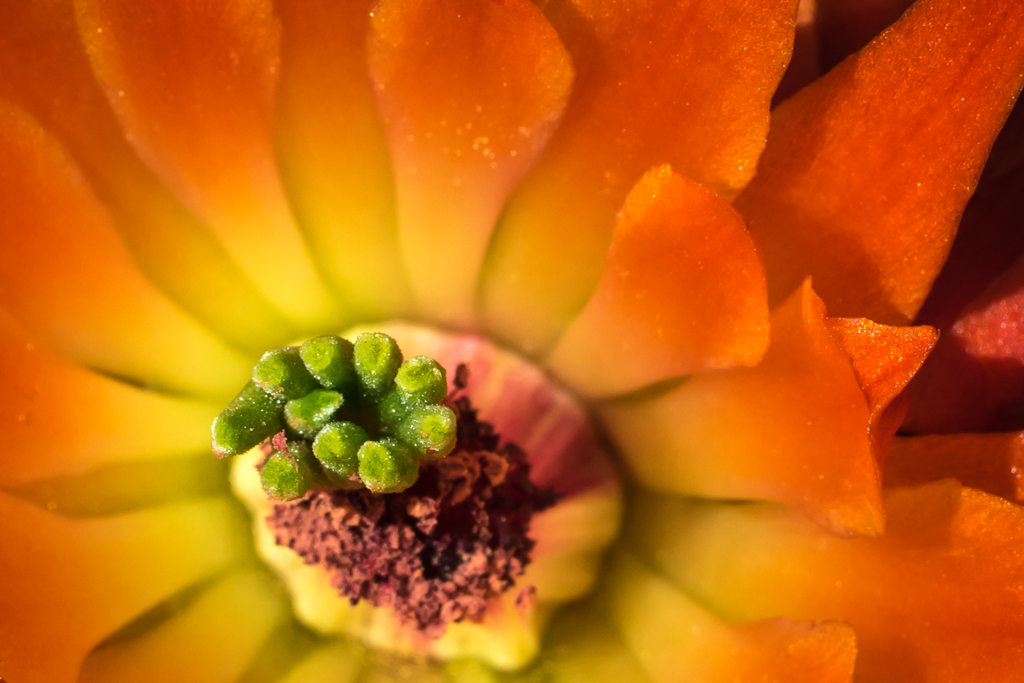 Hi Charlie, I recall I was probably 18" to 24" above the flower pointing almost directly down at the hedgehog cactus. You can see from my original photo that I did quite a bit of cropping and zooming in post-processing. I wanted to use a smaller aperture so I had a greater depth of field, but with a macro lens the DoF always seems to be pretty narrow. I have to be so careful with focusing with the macro. It's a challenge! |