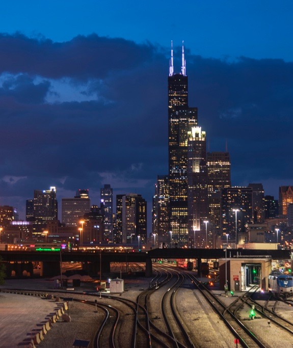 I like the idea of the leading, wavy lines of the tracks in the foreground. I think there might be too much included on the right and left, especially because Willis Tower is such a prominent background subject. So with the tracks anchoring the scene and Willis Tower dominating the background, I simply cropped it tighter and made it a more vertical composition to match the alignment of Willis Tower. |