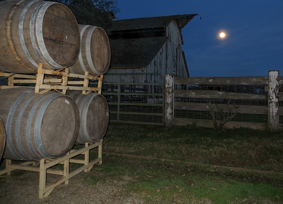 This setting is great, the barrels give it character. Conversely to what Ian thinks I was going to suggest cloning out the right barrel and extend the fence line....so I tried it and it was pretty bad...so instead I cropped it to remove the barrel and lightened the shadows to improve the barn. I have attached for you to see what you think. It may be better with just the barn lightened a little......
