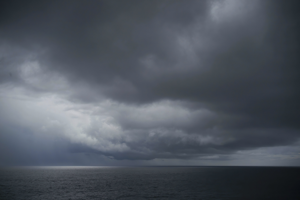Haunting might be the name of this image. You can clearly see the rain coming down in the bottom left and the ocean seems so calm given the abundance of storm clouds. It is all about the clouds! It is still a little pixelated when you magnify it, but even after sending me the second one it was only 527 kb, I did not have reduce the size at all.