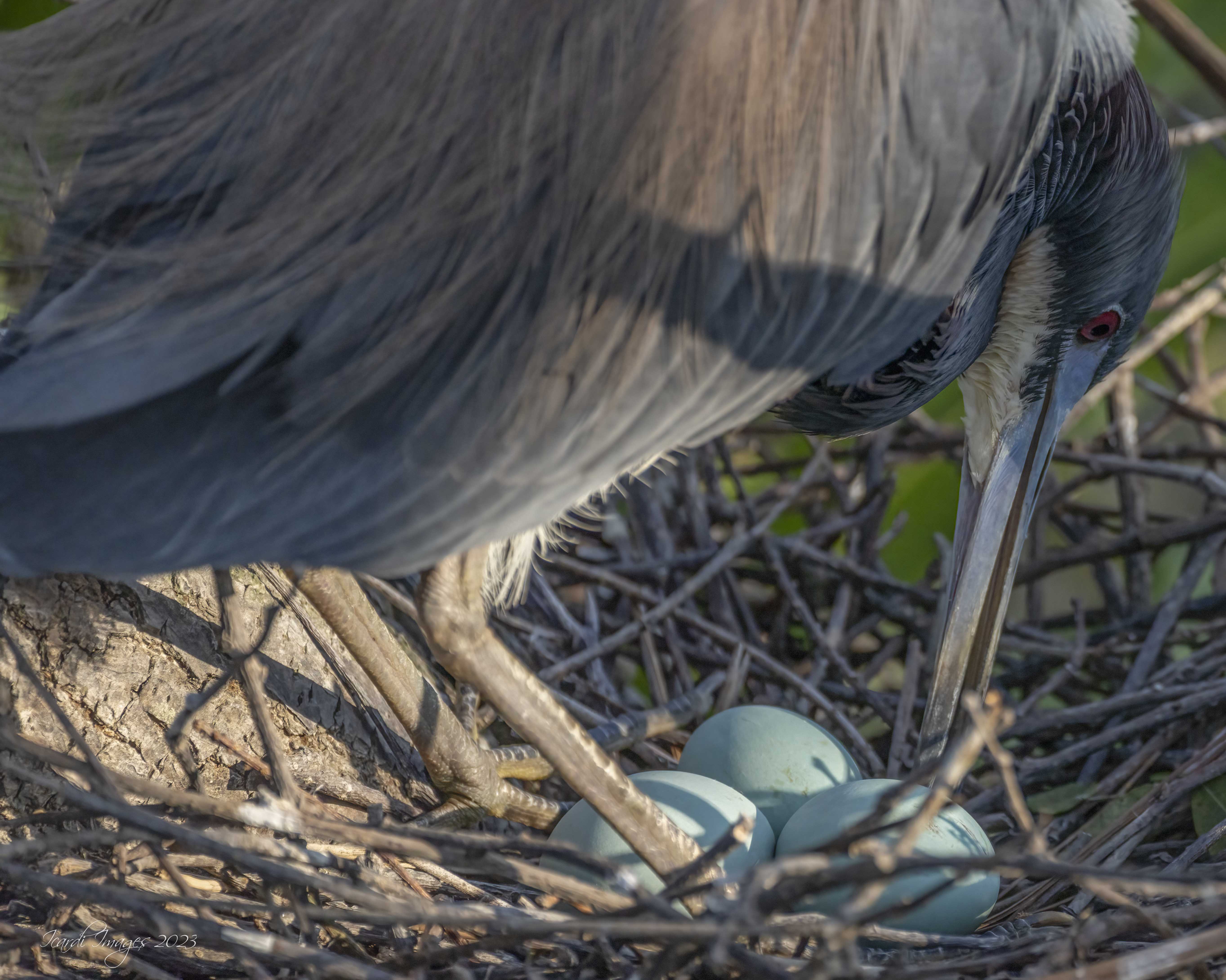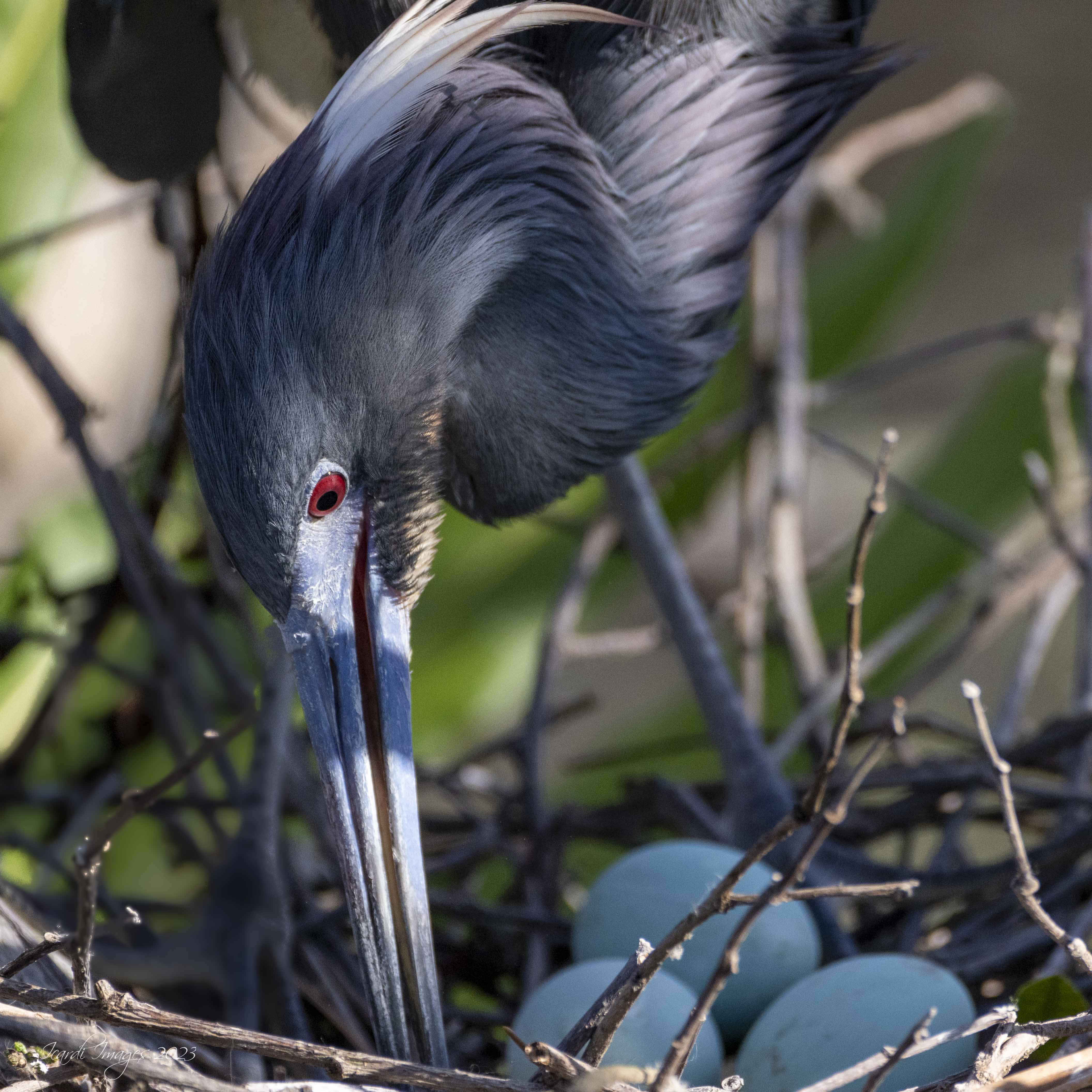 If you get there this momma is right after you come in on the left side in one of the stand alone trees. There is the hand bar in that area. But she is down nearer the water. I was there last week, but stifling, I had a new camera AND just had Carpel tunnel surgery on my left hand so manipulating was not in the realm of possibility. But there are several nests of Tricolors, Great Egrets, and still some Great Blue Herons. And of course the ever present in spring.....Wood Storks. A bit overwhelming! |