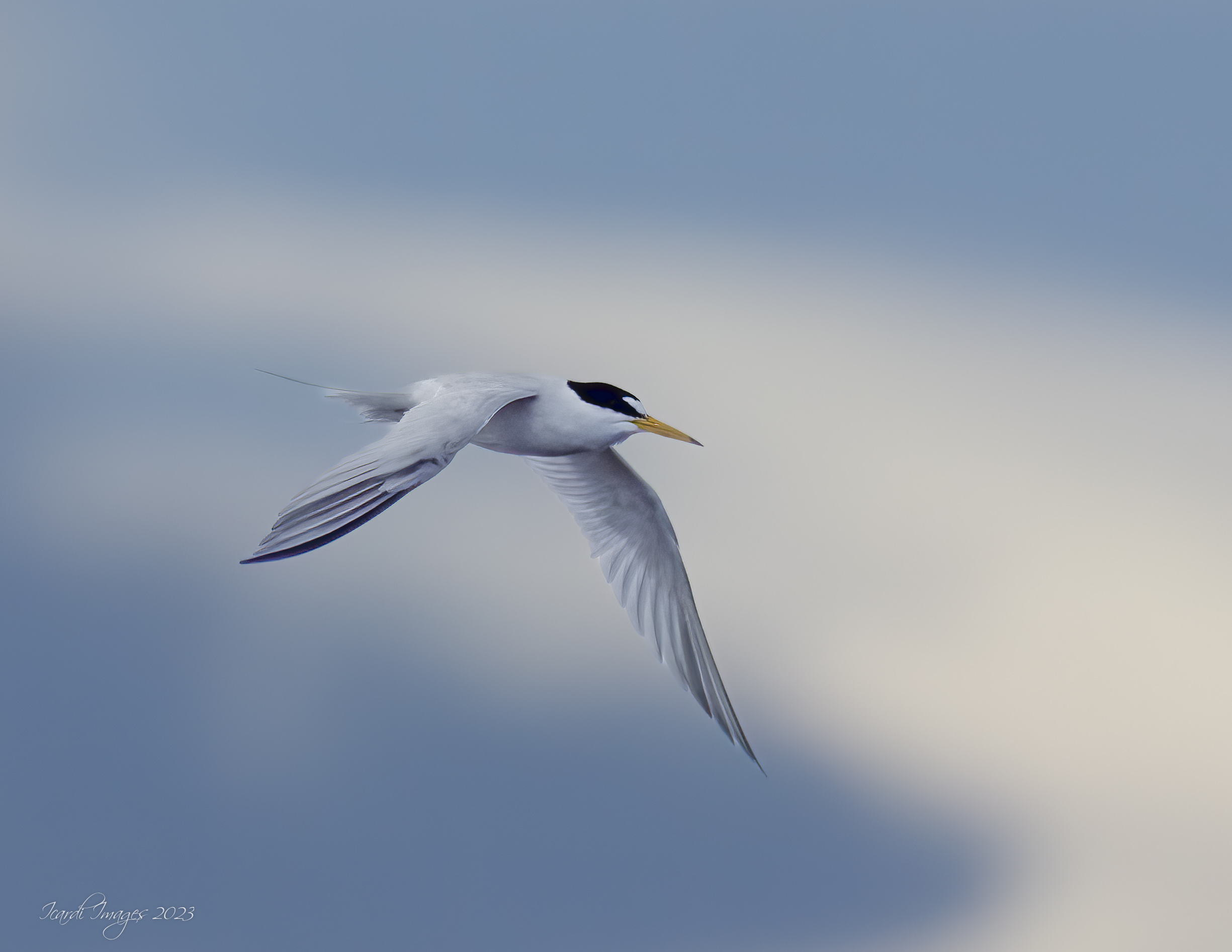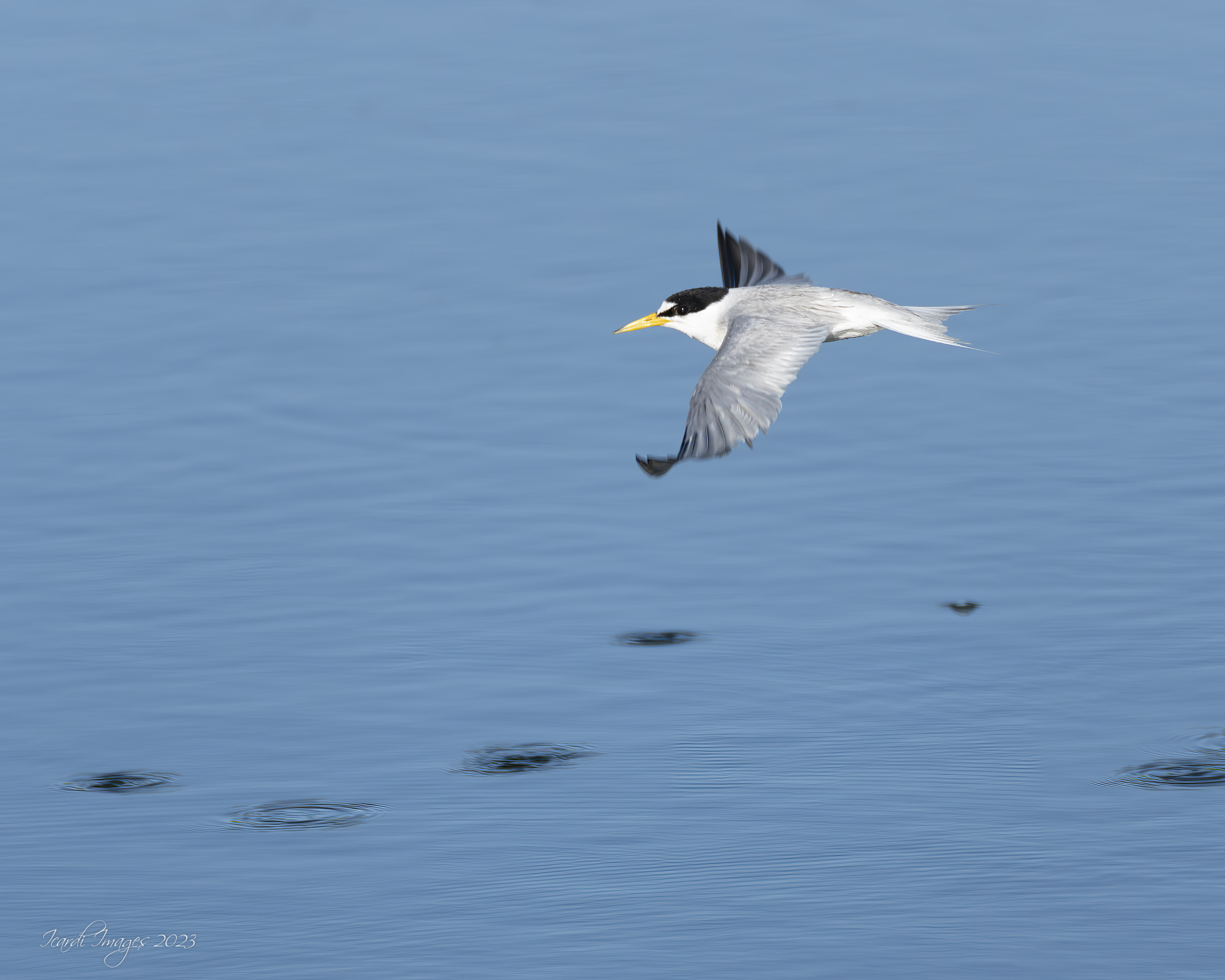 This is a Least Tern, very small they weigh about 1 oz. and about 9 in in length. And very fast! And a Sandwich Tern is much bigger and usually sticks to the beach as far as I know. This was at a local wetlands.