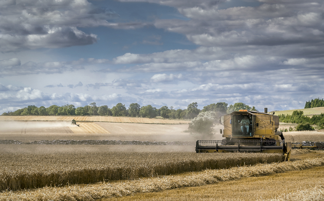 Love the composition, and the combine in the distance, which, I think, is essential to the theme. I would move the horizon line either up or down (preferably up, if you can). And, I would add some drama to the great clouds in the sky. I quickly tried a few of these adjustments. My preference would be to have 2/3 land and 1/3 sky, but content aware fill doesn't do so well with that. |