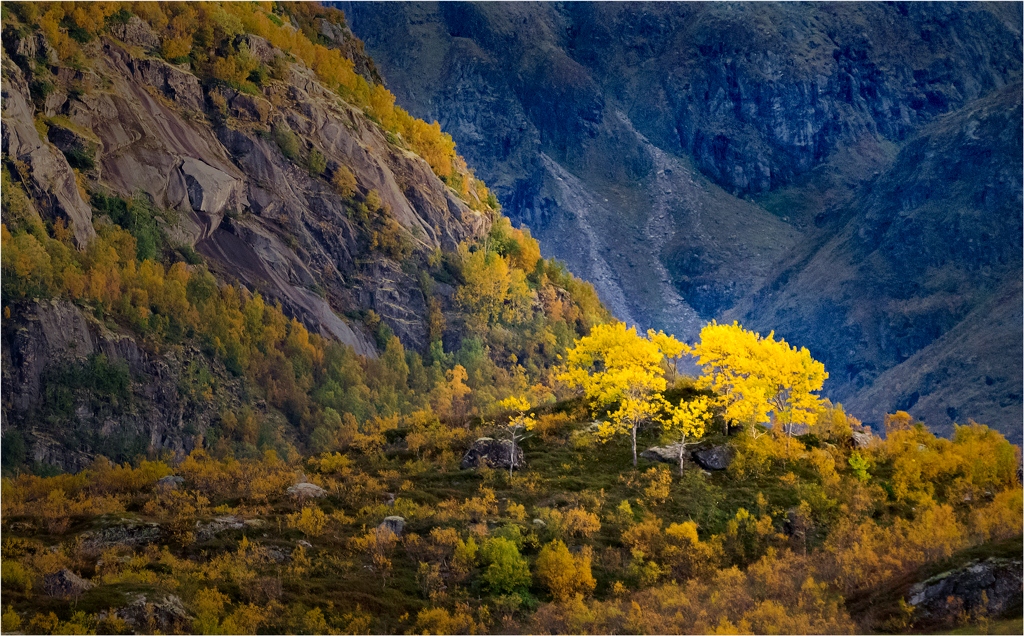 Beautiful, and well composed. I struggle to offer suggestions, so please take these ideas as possibilities that may or may not improve your gorgeous photo. These are things I would try: If the valley in the upper right were darkened just a bit, without losing too much detail, it might add some drama. I tried this slight darkening, and I changed the color temperature of the upper right corner a little away from blue. You probably won't even notice a difference. |