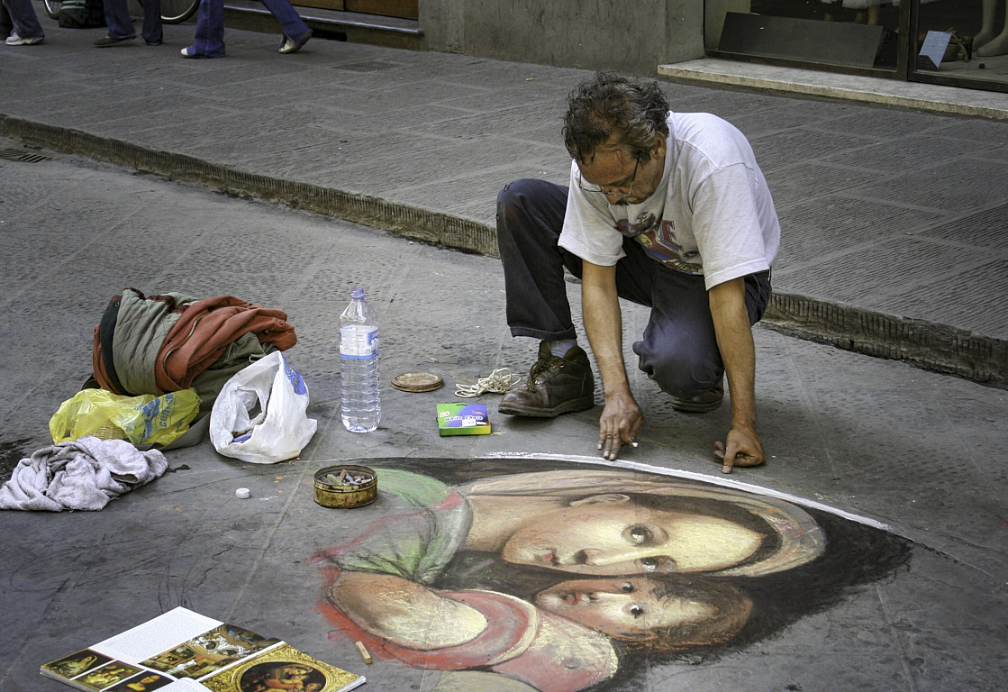 2- using the radial adjustment tool, sculpted the radial to create a mask around the man and the artwork to add a vignette around that area. I think the reduces the distraction of the feet in the top left and direct's the viewer's eye directly to the man and the art.