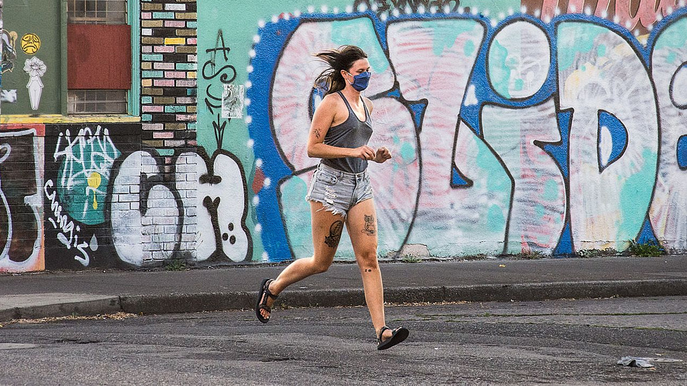 It's up to you to decide what your story is. To me you had 2 competing stories, the wall & the runner. I prefer to emphasize the runner as the story and use the wall as a supporting actor. |