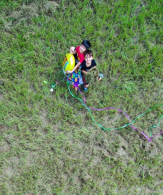 Great photo! I do love the top down look and the ribbons of the balloons add a nice line for the eye to follow to the boys.