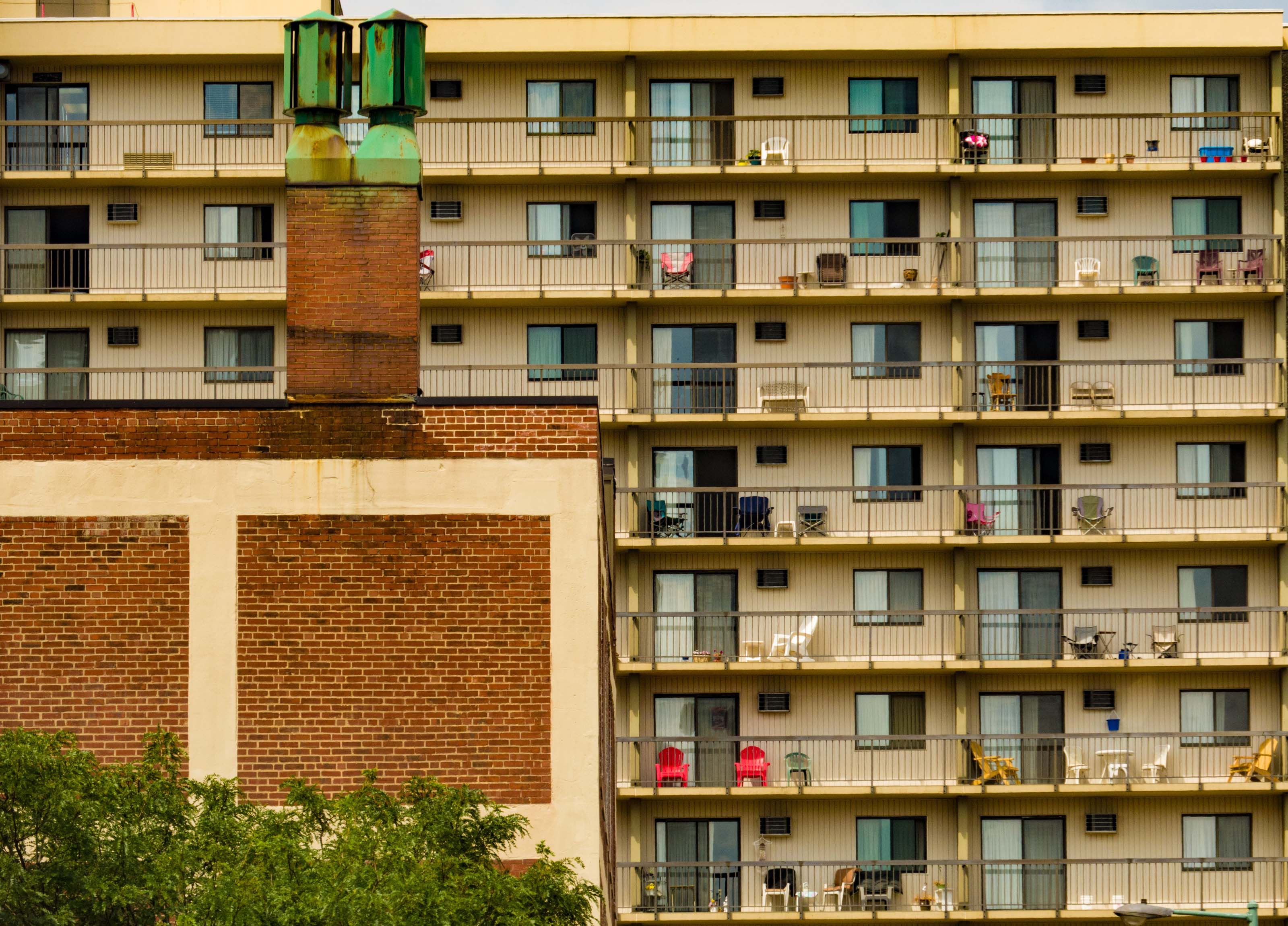 Great image Lou. I like both versions, but I think I prefer the color. I love the richness of the blues and greens. Really helps the grave plots stand out, and there is such a haphazardness to how they are all laid out. Whatever the green is in the windows is interesting. I do like the color better. |