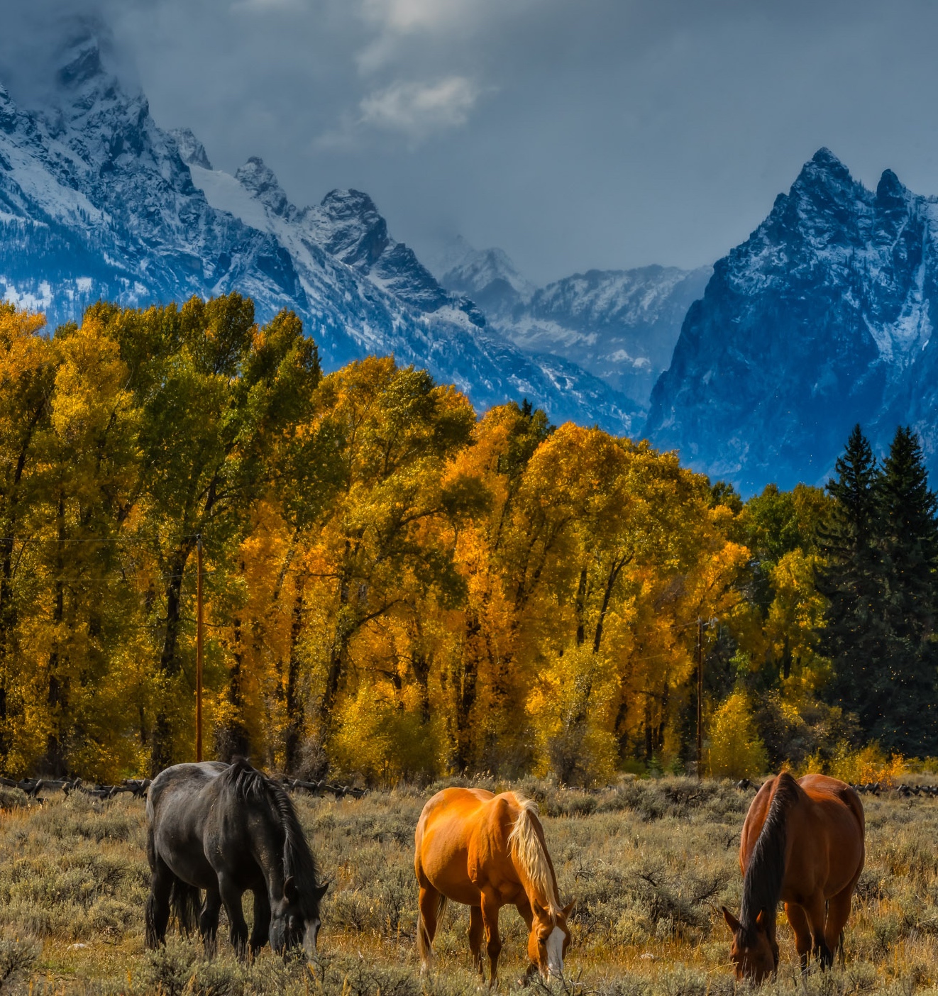 Great image Jim. I prefer the horses' heads down.... although you can't see their eyes as well as the heads up version, I like that they seem more relaxed in the that beautiful environment, with no outside distractions. They are closer to each other, so the arrangement is better that way too, as Ruth said. Maybe crop some of the sky and the field too... or not... lol